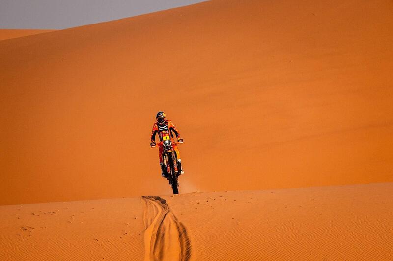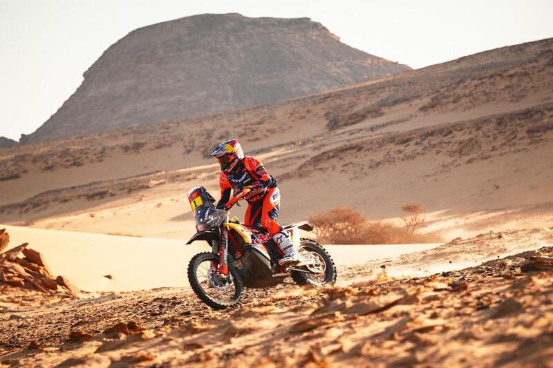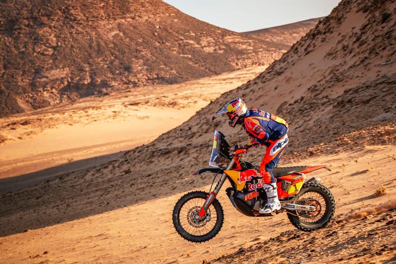 Quindi mi arrendo :-) Luciano Benavides, KTM, primo, Daniel Sanders, KTM secondo, un niente di dieci secondi di ritardo. Ricky Brabec, Honda, terzo in Speciale dopo aver cercato di attaccare partendo dalle retrovie, è terzo anche nella Generale, a poco meno di cinque minuti, ma incassa il secondo colpo morale. Prima da Daniel, ora da Lucianino. Uno “normale” andrebbe via di testa, l’americano due volte Campione non è tipo da deprimersi, ma certo deve attingere dalle sue migliori risorse. Dietro è ormai un piccolo vuoto. Sei Honda nei dieci, ma le prime due sono KTM, l’ultima a cedere definitivamente è quella di Tosha Schareina, che oggi ha firmato il “concordato” e il cui treno viaggia ormai con 20 minuti di ritardo. Insomma, ora è tempo di un sano, grande quesito. Sarà un duello fratricida tra Sanders e Benavides? (beh, “fratricida” direi di no). Riuscirà, Brabec, a reagire? Cavolo, la Dakar più aperta e indecifrabile del decennio?