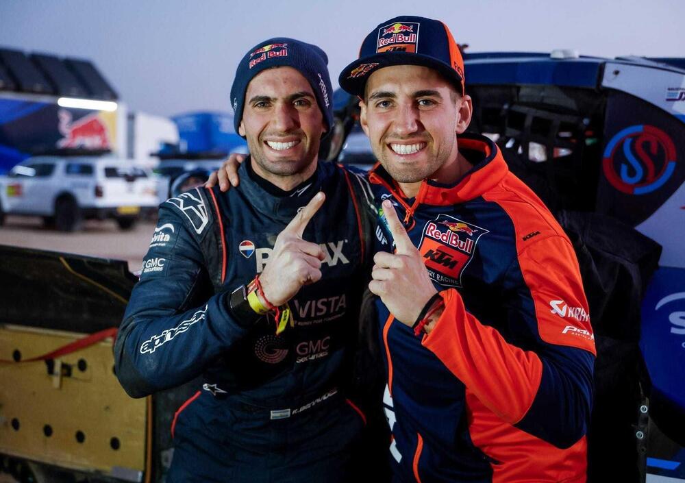 E invece Luciano Benavides, Red Bull KTM, l’ha rifatto. Il giorno dopo aver festeggiato la doppietta dei due fratellini, lui vincitore in Moto, Kevin passato alle 4 ruote alla prima vittoria nei Challenger, Luciano è partito per primo e se n’è andato. Volando. Ha aperto tutta la Speciale, nessuno ha potuto raggiungerlo, e ha recuperato tutti i bonus a disposizione, 7 minuti e 18 secondi senza lasciarne o condividerne neanche uno. Avrebbe potuto favorire decisamente la corsa del… favorito, Daniel Sanders, e invece ha vinto la tappa ed è saltato al comando della Generale provvisoria. L’indizio? Appunto, l’aveva già fatto lo scorso anno a Riyadh e Haradh, due vittorie consecutive, la seconda aprendo la pista. Solo che quest’anno è meglio, il capolavoro è completo. Ora ci tocca vedere la corsa sotto un’altra luce, quella forse già immaginata da Jordi Viladoms, che non a caso è lì in prima linea a disegnare strategie vincenti e non qui a scrivere min****te.