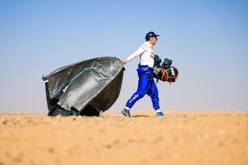 Bivacco Rifugio 2, Arabia Saudita, 13 Gennaio 2026. Oggi sembra essere il giorno della Dakar dedicato al silenzio. Al Bivacco Rifugio della seconda Tappa Marathon, infatti non c’è campo GSM, e le connessioni convenzionali sono escluse, se non per qualche folata di segnale. Niente social, niente post e selfie in diretta. La “produzione” va in archivio e magari domani, quando, partirà il bombardamento appena entrati nel raggio di azione di un’antenna, sarà più selezionata. Il vantaggio di un giorno di telefonino KO è evidente, ormai è assodato. I satellitari, invece, funzionano alla grande, e così via starlink chi può continuare a fare come se non fosse cambiato niente, nonostante la scatoletta di tonno e i cracker, la tenda e il sacco a pelo (e materassino) della vita spartana della Marathon (niente docce e toilette). Niente baldoria di generatori, anche. Insomma silenzio.