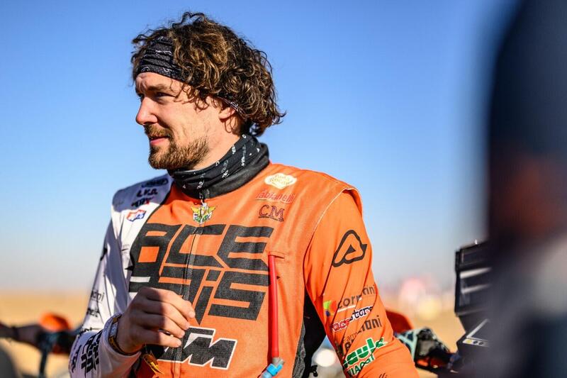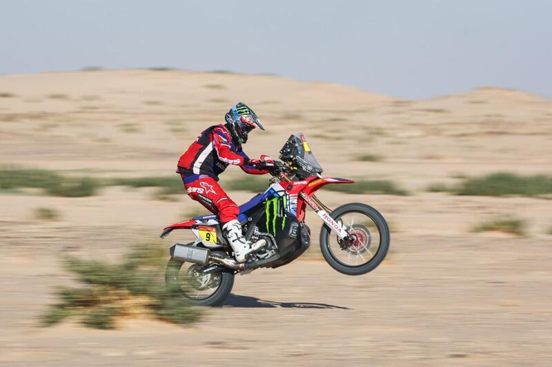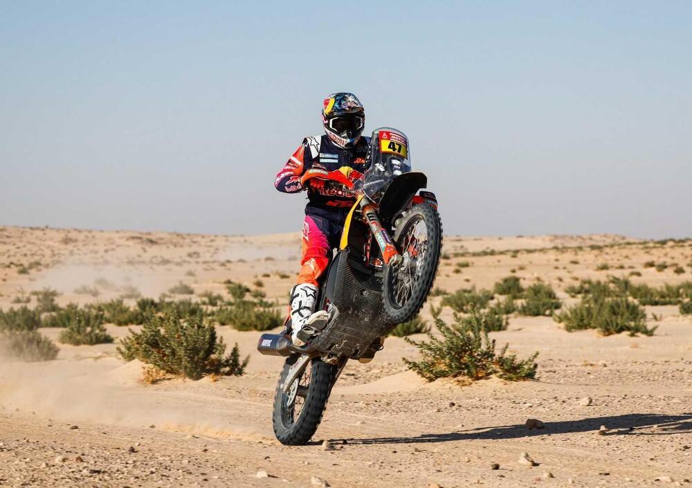 Ross Branch, il doppio Pilota (nella vita è pilota di aereo) ha cappottato due volte. Al formidabile ufficiale Hero che viene dal Botswana è andata bene che ha lasciato sulla pista solo qualche minuto e nessun pezzo, della moto o di sé stesso. Kevin Benavides e Ricky Brabec aprivano la strada e hanno mantenuto a lungo il “privilegio” scambiandosi il ruolo di “battitore” e dividendosi i Bonus del giorno, poco meno di 5 minuti. Ignacio Cornejo partiva dietro, dalla sesta posizione, e aveva davanti a sé l’occasione d’oro. Il piccolo cileno l’ha sfruttata in pieno.