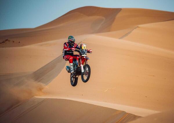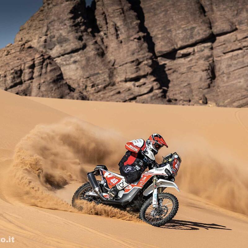 Poi arriva il difficile. Gestire tatticamente così tanti galletti nello steso pollaio. Brabec ha vinto, è l’unico nella Squadra ad averlo fatto, Quintanilla, Van Beveren Cornejo, invece, tutti sono stati a un passo dal riuscirci, quindi hanno il potenziale ma non hanno avuto la fortuna. Materia importante, sempre difficile da gestire. Se si pensa, la sfortunata presenza-non presenza delle Squadre del Gruppo KTM-Husqvarna-GasGas si era… presentata al via con ben 6 vittorie dei suoi Piloti “in attività”. Pur non avendo ancora vinto una sola Speciale, Brabec si presenta alla vigilia dello spauracchio 48H Chrono come il Pilota Honda più accreditato. Se l’Empty Quarter è, contrariamente alle edizioni passate, quel che David Castera ha promesso, cioè un impegno finalmente fuori dal comune, è il momento dell’attacco. Ci pensa Adrien Van Beveren, il Re delle Sabbie (è uno dei fuoriclasse storici del Touquet), che surclassa tutti, torna alla vittoria e lancia Brabec al comando del Rally. È la svolta, la Squadra ha battuto Ross Branch, autentico eroe Hero che, invece, è rimasto solo dopo i ritiri di Rodrigues, Buhler, Barreda. Il Pilota del Botswana è incredibile, forte, veloce e generoso, e la Hero indiana del Davide Wolfgang Fischer è una moto competitiva, all’altezza della migliore. Ma è uno contro 4. Non basterà mai.