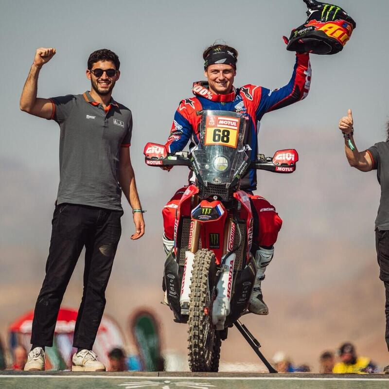 Ricky Brabec, da San Bernardino, California, 32 anni. Nel 2020, alla quinta partecipazione, è stato il primo americano a vincere la Dakar. Era arrivato al Team Honda dopo i successi nelle Baja California, ma le prime esperienze erano state tutt’altro che promettenti. Rotture, collassi, cadute. Un buon ritmo, una certa propensione a gestire assennatamente le proprie risorse in una Squadra che non trovava stabilità, che non riusciva a dare continuità all’impegno che era chiamata dal più grande Costruttore del Mondo ad assolvere. L’edizione del 2020 nasconde una svolta fondamentale. A fianco del Campione americano un altro Campione leggendario, Johnny Campbell, un’incredibile esperienza di Pilota Team Manager, coach. Quell’anno la Dakar di Brabec e Campbell vola al di sopra della Squadra, ancora Barreda-centrica, e coglie finalmente il risultato della svolta. Anche il Team ufficiale Honda Monster non sarà più lo stesso. Il seme del Team di oggi è piantato e, come abbiamo visto, darà i suoi meravigliosi frutti.
