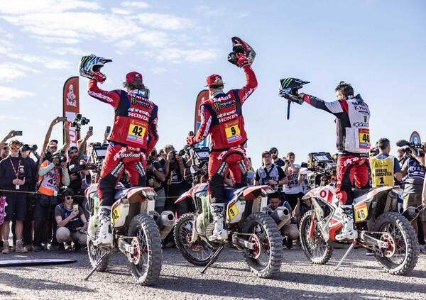 Le Moto. Quale che sia l’importanza dei ruoli all’interno della squadra, di ogni Squadra impegnata alla Dakar, l’espressione della riuscita si concentra nel nome e nella figura del vincitore, del super umano il cui identificativo è il primo riferimento, la prima informazione esaustiva, definitiva. Ha vinto Ricky Brabec. Ma mai come quest’anno, nell’espressione della vittoria perfetta dell’americano, vedo così chiaramente la risolutiva, potente e determinante impostazione, tecnica, mentale e di scelte, della sua Squadra. Che ha concepito un piano così buono da consentire a quei quel nome di innalzarsi al di sopra di una concorrenza non meno motivata, non meno forte e non meno “ostile”. Meno “quadrata”, questo sì, meno adattata alle difficoltà crescenti, questa volte “vere” della Dakar più dura da quando è ambientata in Arabia Saudita. Vittoria di Squadra assolutamente, incredibilmente evidente. Quando Marc Coma, cinque volte dominatore della Dakar in Moto, parlava delle sue vittorie, usava sempre il plurale, era sempre, lui, uno del gruppo, della formazione che aveva consentito, reso possibile tutto quello. Era diventato un po’ un protocollo, ma ogni volta era espressione autentica del sentimento del Campione, per quanto bravo, ma come non all’altezza della situazione se da solo.
