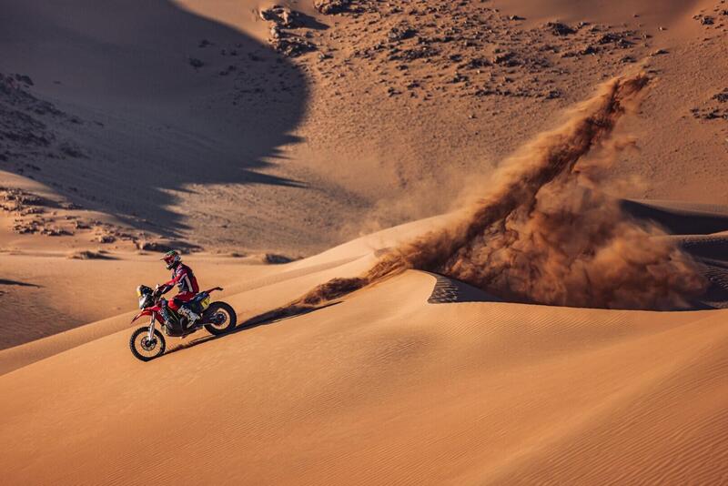 Quest’anno Honda si fa sentire. Piano, in sordina all’inizio, ma la voce che esce dal megafono alla vigilia della Dakar è fortissima. Il Team è diretto da Ruben Faria, ex portatore d’acqua di Cyril Despres. È un portoghese alla Mourinho, silenzioso, che ha imparato dal fuoriclasse di cui era al servizio (tipo difficile) e, anche dalle esperienze personali non propriamente indovinate dopo. È rimasto in silenzio, ha lavorato razionalizzando l’enorme potenziale della Squadra espresso solo a tratti. Prima di tutto è stata confermata l’ossatura della Squadra “storica”. Brabec, Pablo Quintanilla, Ignacio Cornejo. Poi nel corso della stagione sono stati inseriti Adrien Van Beveren, all’indomani del ritiro ufficiale di Yamaha, Skyler Howes, il “fratellino di moto” di Brabec, Tosha Schareina, il velocissimo astro nascente spagnolo. La Squadra è grande, non ha rinunciato a niente, ha implementato l’organico e realizzato una nuova Moto, la Honda CRF450 Rally, che dimostra di aver fatto un ulteriore salto di qualità. Leggera, potente, stabile, che altro volere di più?