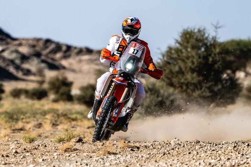 In testa la corsa si è fatta incandescente. È Davide Hero contro il Gigante Honda. Ross Branch contro Ricky Brabec, Ignacio Cornejo e Adrien Van Beveren. Oggi, come a Al Duwadimi all’”andata”, ha vinto ancora Cornejo, che porta a tre il numero dei successi personali. Il cileno si sta mettendo in mostra, oltre che per la velocità, soprattutto per essere il più bravo apripista, al momento, di questa edizione. Cornejo ha battuto i fratelli Luciano e Kevin Benavides, Branch e Brabec, nell’ordine. Branch ha recuperato quasi tutto lo svantaggio da Brabec al comando della corsa. Quasi… gli resta ancora un secondo. Cornejo torna al terzo posto provvisorio, a meno di otto minuti, Van Beveren è quarto a 14 minuti. Sarebbe interessante capire se Branch è davvero solo, oppure se potrà contare sull’aiuto “esterno” di uno o più degli uomini dell’armata KTM-Husqvarna-GasGas non troppo in evidenza a questo giro.