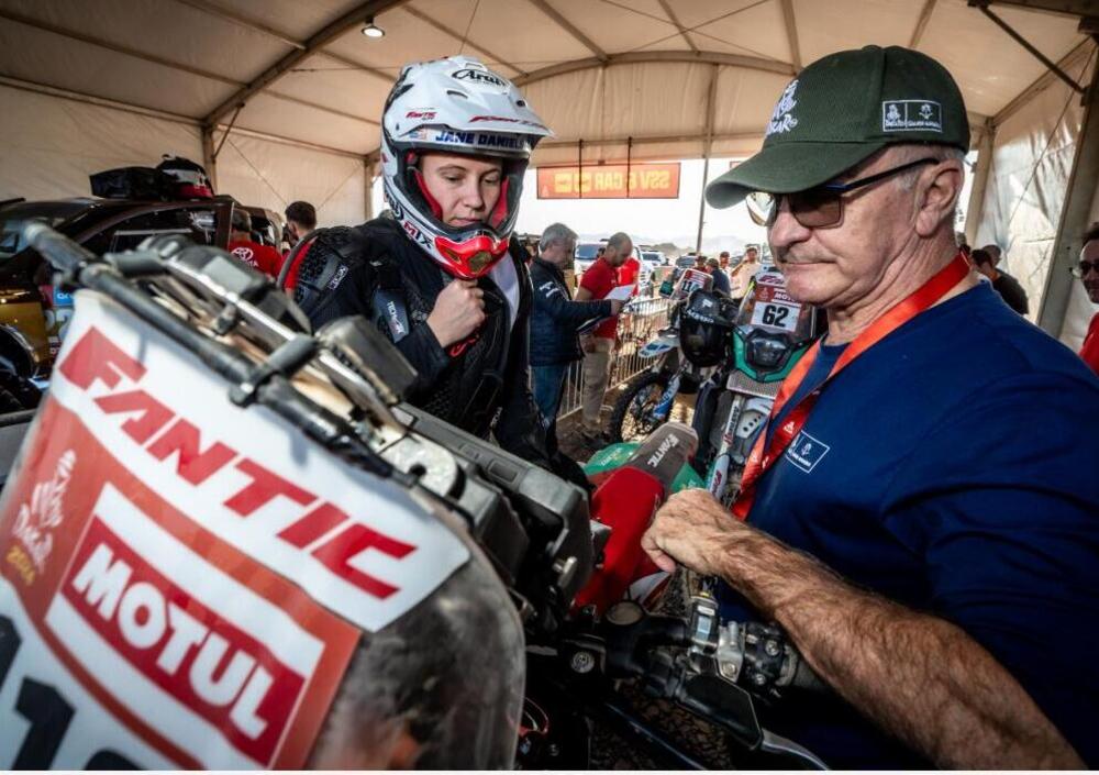 “L’atmosfera al bivacco è incredibile. C’è tanto entusiasmo e ho avuto occasione di rivedere amici, come Laia Sainz con cui correvo in enduro. Mi ha preceduto nel passaggio nei rally raid, prima in moto e adesso in auto. Abbiamo fatto l’ultimo test delle moto, le verifiche, adesso tutto è pronto”, ha commentato Jane Daniels, che punta a vincere la categoria femminile.