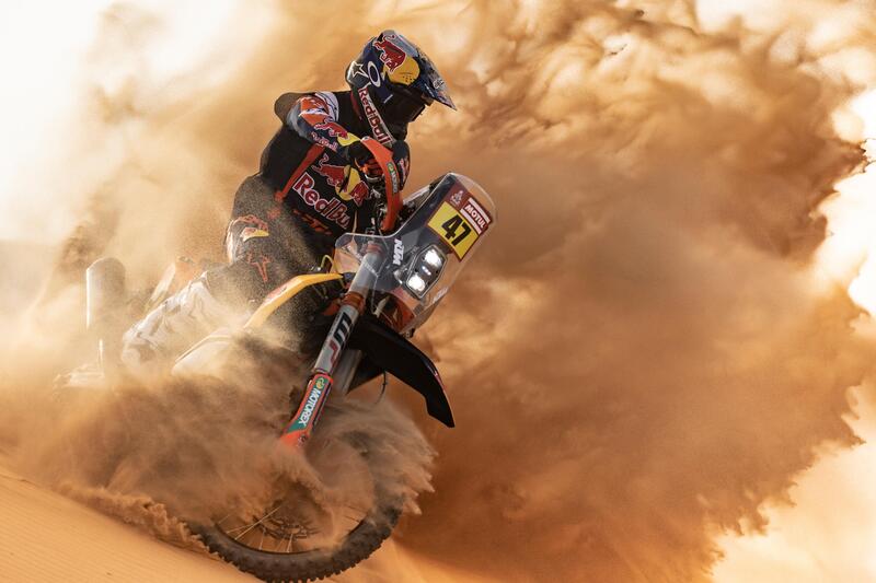 Benavides ha immediatamente ricevuto la visita di Toby Price, il Pilota compagno di Squadra del Team Red Bull KTM Factory che, di fatto e dopo il forfait di Matthias Walkner, infortunato al polso, rileva il ruolo di “punta” del Team austriaco. Toby si è presentato in ospedale con un mazzo di fiori e una stecca di cioccolata, ma nel momento della consegna del pensiero all’amico ha rinunciato ai fiori e ha pensato che un supporto energetico fosse una idea migliore. Morale alto!