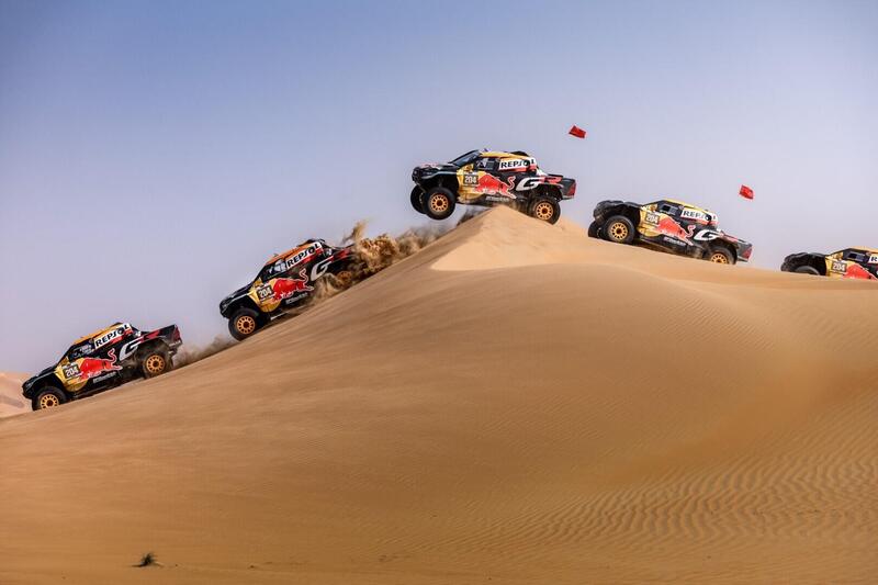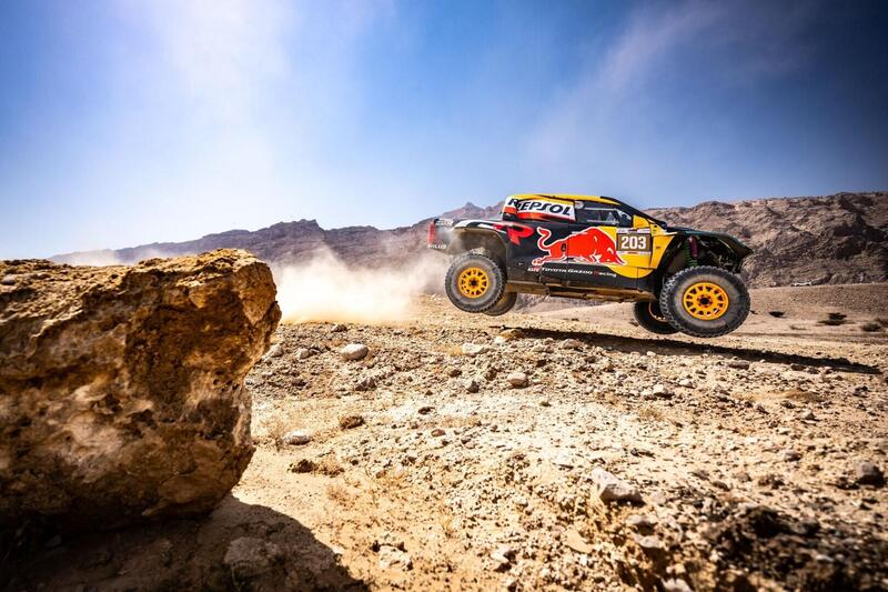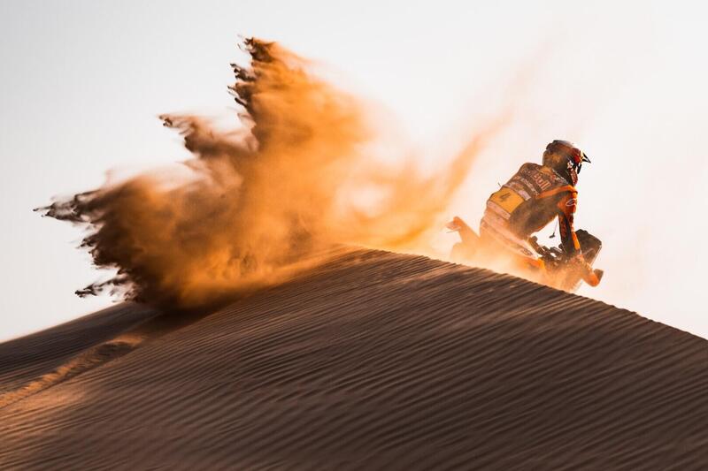 Daniel Sanders, KTM, ha concesso un perentorio e applauditissimo bis dopo la vittoria alla Dakar. Tra le Auto, invece, piuttosto trasparente Yazeed Al Rajhi, fino a un certo punto è stata guerra fratricida (ma elegantemente amichevole) tra le Dacia di Loeb e Al Attiyah con l’intromissione del velocissimo cangaçeiro brasiliano Lucas Moraes. Letale come ai tempi migliori, l’ha spuntata Al Attiyah, ma solo sul traguardo finale di Abu Dhabi. Tutto questo dopo 5 giorni e 2.000 chilometri di Deserto “perso”. Com’è andata? Eravamo rimasti alla seconda tappa, tre giorni compreso il prologo. Sanders aveva vinto per la prima volta ed era passato al comando, Al Attiyah, Dacia, aveva battuto le Toyota di Quintero e Moraes, e si era installato al primo posto. Loeb penalizzato e in ritardo era sceso al terzo posto. L’indizio sullo sviluppo possibile del Rally era preciso, ma tutt’altro che risolutivo.