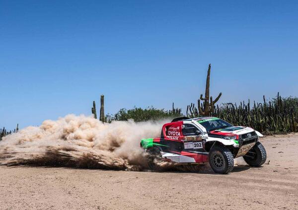 Diamo dunque un’occhiata alla “mossa” del Sonora Rally, così scorriamo anche le liste e passiamo in rassegna i ranghi. Prologo. Big a parte, è giorno inaugurale di sorprese. Bradley Cox, KTM, il figlio d’arte sublime di Rally-Raid, il mito sudafricano Alfie, si impone davanti a Toby Price, KTM, e Luciano Benavides, Husqvarna. Serve solo per scegliere l’ordine di partenza RallyGP, così Cox, Rally2, vince, sorprende e… basta. Tra le Auto la prima vittoria è per Yazeed Al Rajhi, Toyota, davanti a Nasser Al Attiyah, Toyota, e Guerlain Chicherit, Hunter Prodrive. Loeb è quarto.