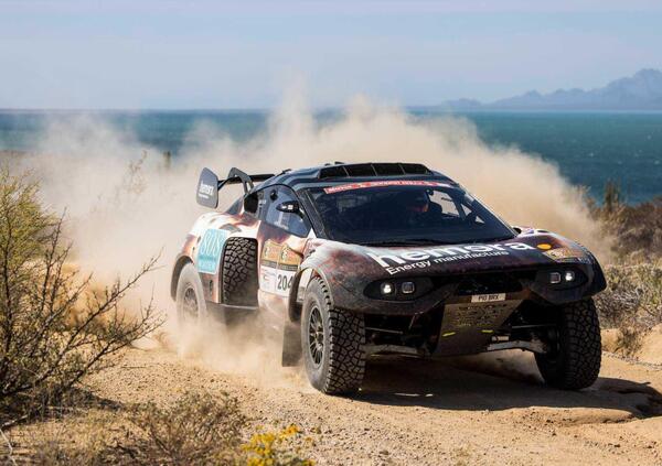 Puerto Peñasco, Messico, 27 Aprile. Sonora Rally 2023. È la terza Tappa e si passa ai colpi di scena. Giornata lunga, la Speciale più lunga del Rally, Road Book limitato ma difficile, piste insidiose. 350 chilometri contro il cronometro, altri 116 di trasferimento per tornare a Peñasco, da dove cioè è partita la carovana del Sonora Rally 2023. La copertina della terza giornata di gara (oltre l’ininfluente Prologo) è della Hunter Prodrive di Sébastien Loeb e Fabian Lurquin, inesorabilmente incastrata dentro un crepaccio.