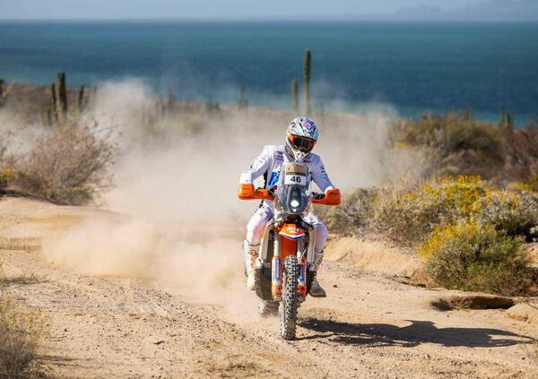 Terzo di tappa è Ricky Brabec, Honda, ma terzo a due tappe dalla fine è il “discreto” e consistente Pilota argentino Luciano Benavides, Husqvarna, in ritardo tuttavia di 15 minuti. Gara interessante per Paolo Lucci, KTM. Non è velocissimo come anche lui si aspettava, ma condivide la stessa sorte dei suoi compagni di Squadra del Team BAS Racing. Il Rally si dimostra poco navigato e pericoloso, cosicché il ritmo non viene e la classifica non avanza. A dirla tutta, trovo che sia un’attitudine molto intelligente: meno rischi e maggiore controllo sulla classifica del Mondiale Rally2, oggi ancora vincitore Dumontier. Continua sicura (con qualche “volo”, per la verità), la cavalcata dell’eccentrico Pilota modenese Massimo Camurri, che partecipa per diletto alle avventure più insolite del pianeta Rally senza curarsi del risultato. Oggi, comunque, Camurri si ritrova leader della Rally3.