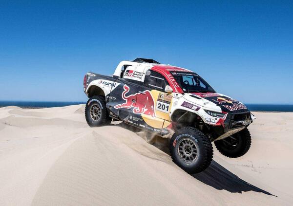 Resta, invece, piuttosto equilibrata la gara delle Auto. Ma non priva, anche nel penultimo giorno, di colpi di scena. Questa volta a “patirlo” è Guerlain Chicherit, Prodrive Hunter. L’ex Campione del Mondo di Freestyle sembrava destinato a vincere la Speciale e, con quella vittoria, a scavalcare Yazeed al Rajhi, Toyota Overdrive, nella generale, salendo così al secondo posto alle spalle di Nasser Al Attiyah, Toyota Gazoo Racing. Poco oltre il KM 150, tuttavia, il francese era costretto a uno stop per un guasto e, dopo una mezz’ora di tentativi infruttuosi, arrivava il momento di chiamare l’assistenza, e quindi della resa. Nel frattempo Al Attiyah aveva deciso che il miglior modo per controllare la propria leadership era quello di attaccare e andare a vincere, significativamente davanti a Al Rajhi e al sorprendete brasiliano Marcos Baumgart, al debutto nel Mondiale con una Prodrive Hunter. Così a un giorno dalla fine del Rally la situazione torna completamente sotto il controllo del Principe del Qatar. Al Attyah e Baumel, infatti, hanno adesso più di 7 minuti di vantaggio su Al Rajhi e Gottschalk e quasi 13 sulla coppia Halpern-Graue, Mini X-raid. certo, vita facile per Al Attiyah, dopo lo spettacolare ritiro di Sébastien Loeb! La penultima tappa coincide con la nuova buona prestazione di Eugenio Amos e Pasolo Ceci, a loro volta debuttanti ai comandi della Hilux Overdrive con la quale hanno fissato di correre alla prossima Dakar. Indietro ma tenace, Rebecca Busi, Can-Am FN Speed Team, che corre con il navigatore francese Delaunay.