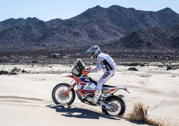 Questa mattina i cittadini di Caborca ci hanno accolto a centinaia proprio alla partenza della speciale, è stato molto emozionante! La speciale era molto veloce, con anche un settore sulla spiaggia molto molto scenico. In generale nei tratti veloci con le moto rally3 facciamo un po’ più fatica, ma comunque sono riuscito ad andare bene.”