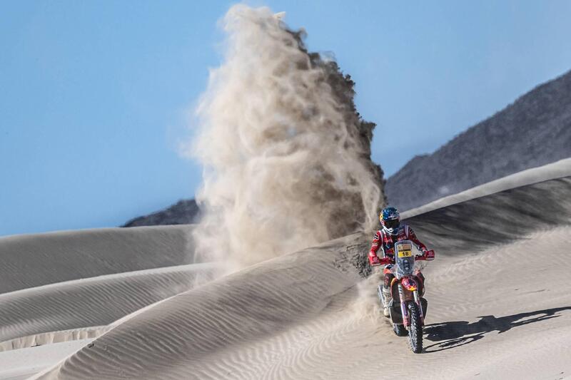 “Solo” quarto nella penultima frazione cronometrata, Daniel Sanders dimostra di aver ormai perfettamente sotto controllo l’edizione 2023 del Sonora Rally 2023 delle Moto. Il vantaggio dell’australiano ufficiale GasGas è tale per cui la “strategia” diventa ovvia: lasciar un giorno “libero” agli avversari e riservarsi di controllare la corsa fino al traguardo finale. A vincere la sua prima Tappa in questo Rally è il connazionale Toby Price, KTM, primo su traguardo di Puerto Penasco davanti al “solito” Tosha Shareina, Honda, che ha aperto la pista per buona parte della Speciale, e il consistent Luciajo Benavides, Husqvarna. Come detto, Sanders è quarto davanti a Walkner e Brabec, ma concede al vincitore meno di 2 minuti. Ottima la gara di Paolo Lucci, finalmente “in tiro” con un dodicesimo posto assoluto, e continua la “striscia” di Massimo Camurri, per la quarta volta consecutiva vincitore nella Rally3. La quarta e penultima Tappa non ha grandi effetti sulla generale. Sanders resta leader pressoché incontrastato, con un vantaggio di poco meno di 6 minuti su Shareina e di oltre 14 su Luciano Benavides. Fuori gioco, ormai, tutti gli altri.