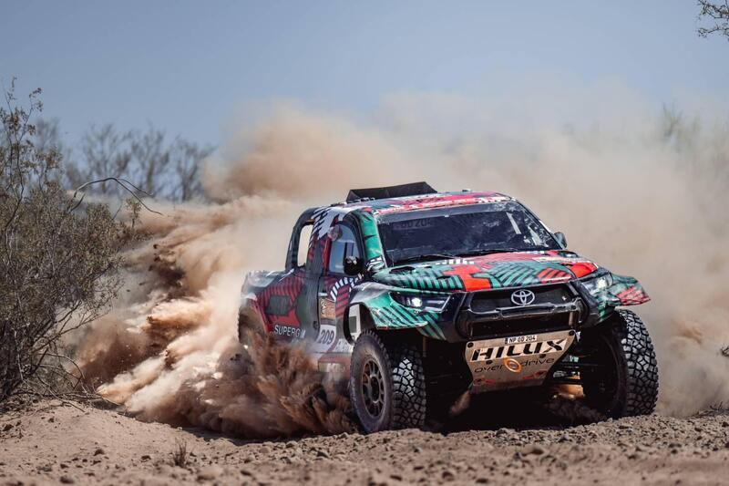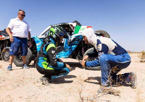 Interessanti le gare del cinese Zhang con la Baic, sesto assoluto, e dei due brasiliani in gara con due Hunter Prodrive, i fratelli Marcos e Cristian Baumgart, soprattutto il primo, andato a podio di Speciale alla prima esperienza. Fenomenale, come ormai è prassi, la gara dei piccoli, “cattivi” SSV, sempre incerta e avvincente. Guthrie ha vinto la T3 davanti a Ekstrom e Jones, e Baciuska ha vinto la T4 davanti alla nostra Rebecca Busi e Umeda. Tutti Can-Am fortemente South Racing oriented, ad eccezione di quest’ultimo, con un Polaris di Xtreme Plus. Italiani in grande ascesa. Un italiano, per la verità, anzi due. Eugenio Amos e Paolo ceci, al debutto con una Toyota Hilux del Team Overdrive, e con un grande progetto: la Dakar 2024 con la Macchina detentrice. L’annuncio era quello di un Rally-scuola, di adattamento alla Macchina e alla tipologia del Rally. Succede che al KM 25 della prima Speciale la Toyota numero 209 va in uno spettacolare tonneau. Lezione imparata, si riparte da zero. Piano piano ecco in arrivo le buone sensazioni e la padronanza della vettura, fino all’ottimo 8° posto assoluto dell’ultima Speciale. L’indicazione diventa improvvisamente molto buona. Ventunesimo posto assoluto per Rebecca Busi, con Delaunay alle note e il Can-Am del Team FN Speed.