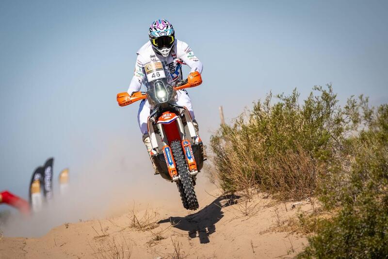 Paolo Lucci. KTM Rally2. “Rally finito, in archivio. Non come mi sarei aspettato o come avrei voluto. Ma è così. Ultima Speciale, piuttosto bruttina. Zero navigazione, 10 chilometri, una curva a 90°, dieci chilometri di buche, un’altra curva. Molto veloce, e pericolosa fino alla fine. Non sono proprio soddisfatto di questa gara, ho l’impressione di non aver trovato le sensazioni giuste con la moto, che i tracciati non mi si addicessero proprio. O magari ero nella settimana no, non lo so. Comunque abbiamo limitato i danni. 15° assoluto, terzo Rally2 e ancora primo in Campionato. Adesso devo prepararmi bene per l’Argentina speri che lì troveremo terreni più adatti e più navigazione, certamente ci saranno più sabbia e più dune. Bene, ci aggiorniamo al rientro in Italia. Grazie a tutti!”