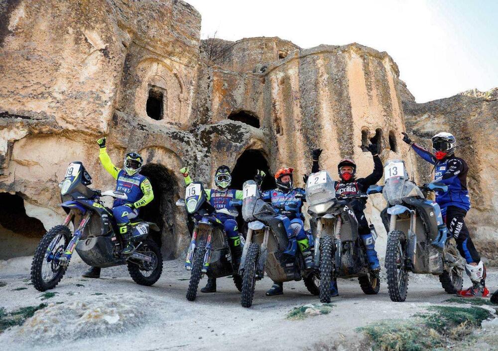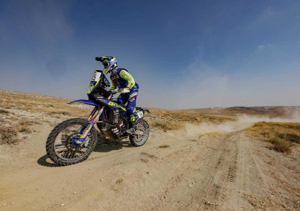 È la giornata di Yamaha, senza dubbio. Oltre alla doppietta di tappa si va affermando anche quella nella classifica generale. Tarres difficilmente potrà essere insidiato nell’ultima frazione del Rally, appena 90 chilometri di Speciale, e d’altra parte lo spagnolo ha messo in mostra una crescita anche un po’ sorprendente, visto che oltre a guidare la Ténéré 700 come una bicicletta, va forte e naviga benissimo, con grande sicurezza. Una scoperta interessantissima, insomma, questo spilungone funambolo sempre di buon umore. Tarres ha un buon margine su Botturi, che gli consente di gestire con una certa tranquillità il finale del Rally, 12 minuti. Jacopo Cerutti, che partiva prima di Botturi, ha corso una sesta Tappa molto prudente, e ciononostante non ha avuto fortuna. Partito sulla pista sbagliata su una nota di Road Book poi molto discussa, ha offerto a Botturi, tornando indietro, la soluzione del rebus. Restituito all’avversario il vantaggio che aveva, Cerutti è di nuovo 4 minuti dietro a Botturi. È sorprendente che la prima Sherco, quarta assoluta, non sia né quella di Santolino né quella di Gonçalves, bensì quella dell’indiano Noah, e non è troppo sorprendente li quinto posto del velocissimo idolo locale Murat Yazici con una Fantic.
