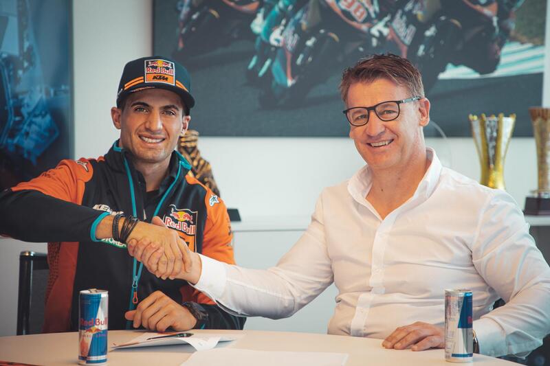 Mattighoffen, 7 Aprile. Pit Beirer, Direttore Motorsport di KTM, Robert Jonas, Vice Presidente Motorsport di KTM e Jordi Viladoms, Team Manager della Squadra ufficiale Rally KTM, si riuniscono attorno al tavolo della trattativa e porgono il documento. Il Pilota lo guarda appena, hanno già sviluppato ampiamente l’argomento, prende in mano la stilografica (per la verità è una “biro”) e firma. Così Kevin Benavides, 32 anni, di Salta, Argentina, entra a far parte del Team Red Bull KTM Factory Rally. Notizia di per sé esagerata. Il vincitore della Dakar 2021 cambia casacca e si sposta verso il Team che detiene il record di vittorie, ben 18 a partire dal 2001. Data storica, la prima vittoria di una KTM firmata Fabrizio Meoni. E anche la seconda, un anno dopo con la bicilindrica LC8.