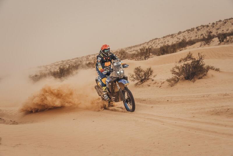 Botturi, insieme a Pol Tarres, aveva una missione, che per un “giovanotto” del tipo è un po’ una museruola: portare a termine il Rally senza curarsi del risultato. Il collaudo della Yamaha bicilindrica del nuovo corso come priorità assoluta. Tuttavia il Gigante di Lumezzane sapeva cosa aveva sotto il sedere, poiché aveva partecipato ad ogni step dello sviluppo, e conosceva già bene questo Deserto, per avervi corso e sperimentato altre volte. Ne conosceva la volubilità ma non poteva controllare le vicende che sono frutto delle circostanze agonistiche e meteo.