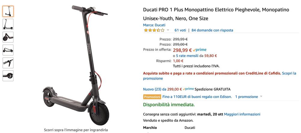 Avete una Ducati in garage? Se pensate a un monopattino questo è l'ideale. Il Ducati PRO 1 Plus è un monopattino piuttosto leggero (12 kg) e dal costo piùttosto contenuto. Per alcune ore è ancora in offerta a 298,99.