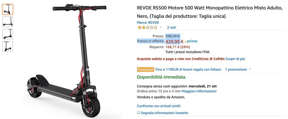 Leggendo le caratteristiche di questo monopattino pare un prodotto davvero interessante. Purtroppo nelle amiriade di offerte non abbiamo avuto mai esperienza diretta di questo brand. Il prezzo di 598,70 € scende grazie ai Prime Days a 429,99 euro.