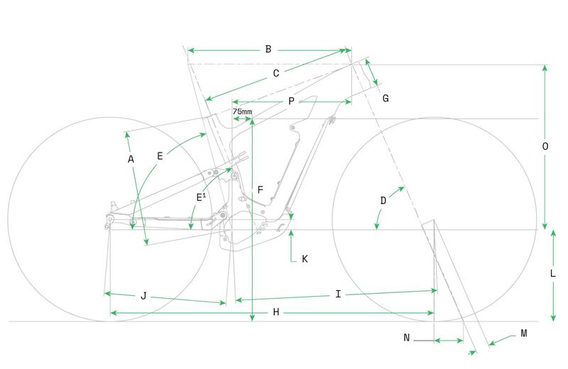Cambiando l’escursione delle sospensioni, cambiano anche le geometrie. Il reach è ridotto, così da offrire al ciclista una posizione più eretta e comoda, mentre l’angolazione del cannotto di sterzo è più chiusa per incrementare la reattività della sterzata. Cambia poi anche l’inclinazione del tubo reggisella, che risulta essere più verticale, così da massimizzare l’efficienza della pedalata e l’ampiezza del passo che si traduce in una manovrabilità differenziata rispetto alle altre bici. L'idea di base è massimizzare l'efficienza della pedalata così che la combinazione tra ciclista e motore renda possibile incrementare il range delle uscite.