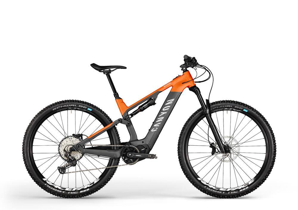 Ma il vero obiettivo dei progettisti di Canyon è stato quello di aumentare la guidabilità della Neuron: a tale scopo il baricentro è stato abbassato e il triangolo anteriore irrobustito. Sul telaio in alluminio sono montati una forcella con escursione da 130 mm e il collaudatissimo motore elettrico Shimano E8000 alimentato da una batteria da 504 Wh.