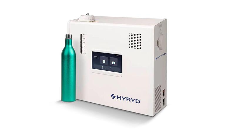 L'e-bike è dotata di un vano nel telaio che ospita una bombola di idrogeno intercambiabile. Ecco, è sufficiente sostituirla quando è vuota con una piena per ripartire. Tempo necessario per l'operazione? Dieci secondi. Per ricaricare poi le bombole, HydroRide offre un generatore di idrogeno domestico che può essere alimentato dalla rete elettrica o - se siete dei virtuosi - da pannelli solari. Questo dispositivo converte 200 ml di acqua purificata in 20 g di idrogeno, a una pressione di 10 bar, in circa 5-6 ore. Questo consente di riempire una bombola da 25 cm che garantisce un'autonomia di circa 60 km.
