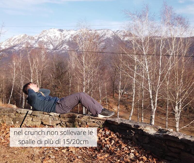Il Crunch è l’esercizio per allenare il retto dell’addome, in questo caso è necessario sottolineare un aspetto fondamentale, molte volte si vedono filmati in cui la persona alza le spalle fino a raggiungere con i gomiti le ginocchia. Questo è un movimento sbagliato, che rischia di sovraccaricare la schiena e di vanificare i benefici che potremmo avere da un esercizio svolto in modo corretto. Per allenare il retto dell’addome le spalle non devono alzarsi per più di 15/20 cm, solo così riusciremo ad allenare bene la muscolatura addominale senza creare sovraccarichi inutili.