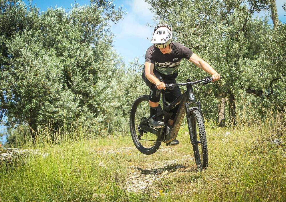 Scott ha sempre aperto la propria strada sul sentiero... le loro scelte tecniche sono ispirate dai desideri dei loro clienti e dalla loro squadra di gara molto di successo. Mettendo tutto questo in una e-bike, hanno creato un pacchetto flessibile che cerca di soddisfare tutti e allo stesso tempo offrire prestazioni distintive. La geometria è equilibrata e si posiziona nel segmento medio del mercato in termini di comfort di guida: offre abbastanza aggressività e allo stesso tempo abbastanza rilassatezza. Scott ama l'efficienza, quindi il blocco della sospensione è progettato per valorizzare le scelte di traiettoria del ciclista, offrendo alla bici diversi livelli di reattività a seconda del momento. Discesa impegnativa? Modalità senza clic, salita ripida? Modalità blocco. Terreno accidentato e bagnato? Modalità trazione con clic. Funziona davvero bene e cambia visibilmente la sensazione di guida. Abbiamo constatato che la Eride 900 si adatta bene come una macchina da all-mountain. Non vorremmo affrontare percorsi di Enduro estremo, ma ci piace molto su sentieri stretti e tortuosi nei boschi. Pedalare questa bici è molto confortevole e la scelta della modalità di alimentazione Bosch Scott è ottima per i ciclisti che preferiscono una potenza dinamica e reattiva invece di una potenza costante tutto il tempo.