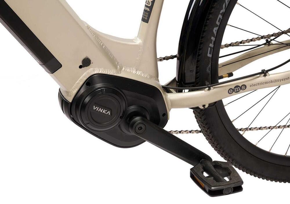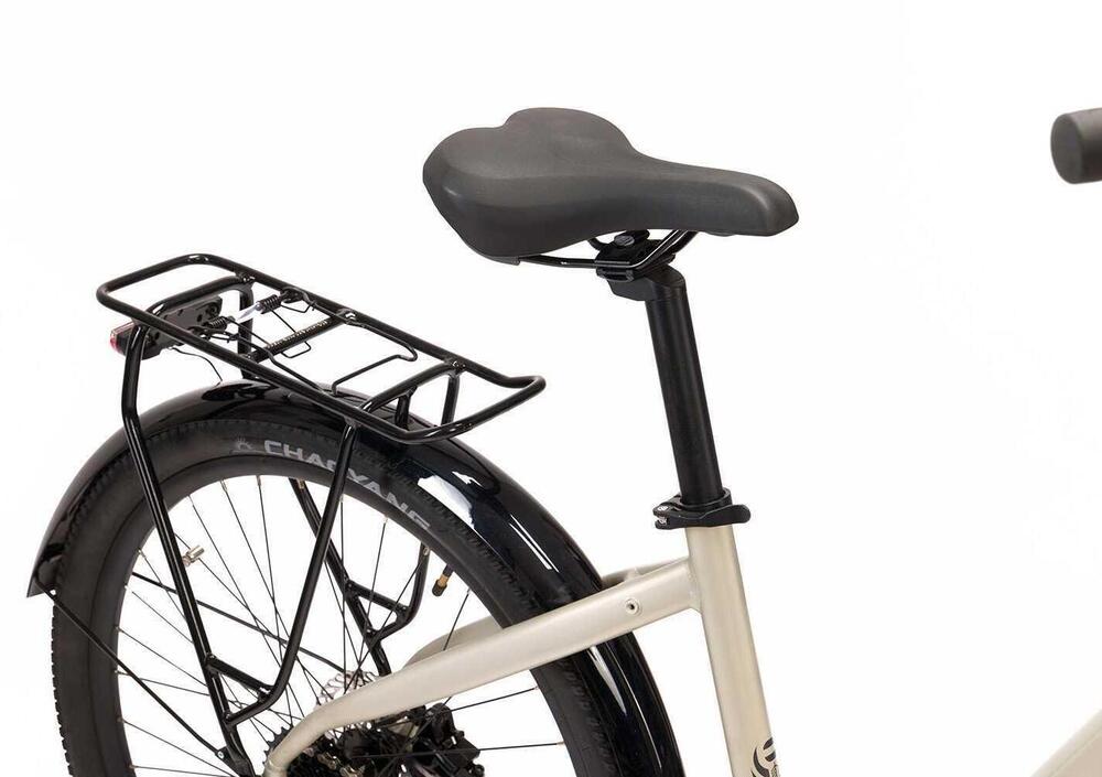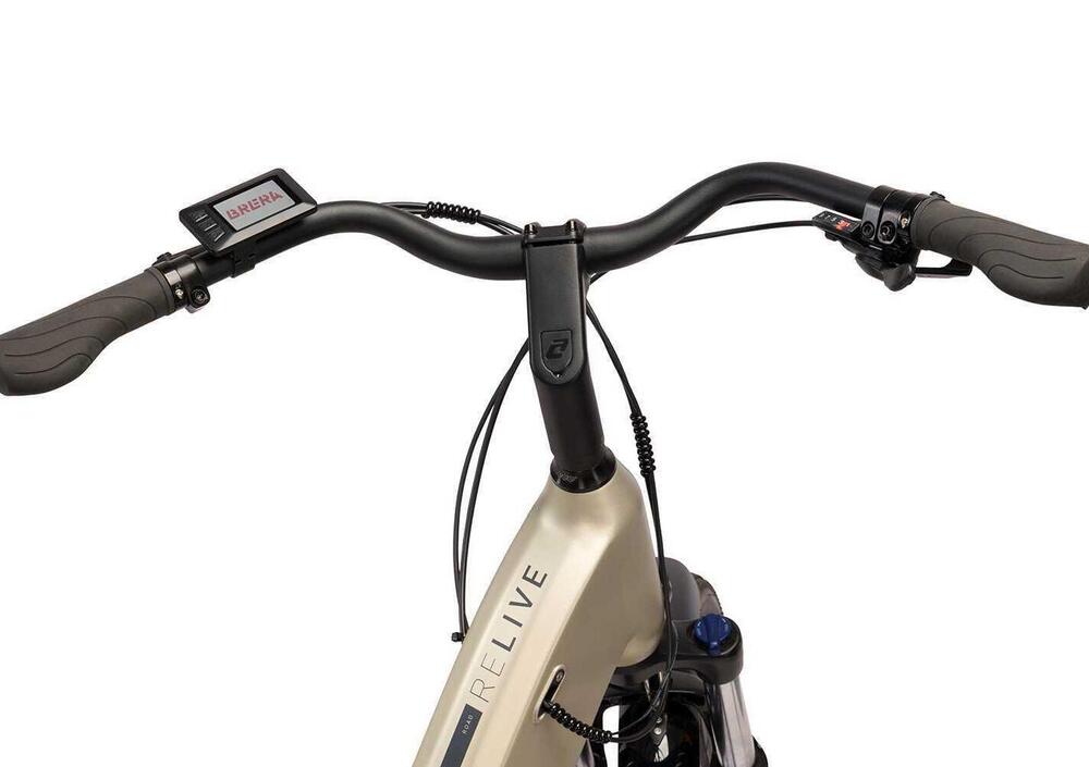 La Relive si differenzia per il telaio di tipo step through che sicuramente facilita la salita in sella e la rende più cittadina. Troviamo in ogni caso anche qui la forcella Suntour NVX. La posizione di guida è eretta e votata al comfort e le manopole ergonomiche hanno anche l'appoggio palmare per ridurre la pressione sulle mani. I freni sono a disco idraulici e troviamo anche qui una dotazione completa di parafanghi, portapacchi e luci a led. È disponibile nelle colorazioni sabbia e verde.