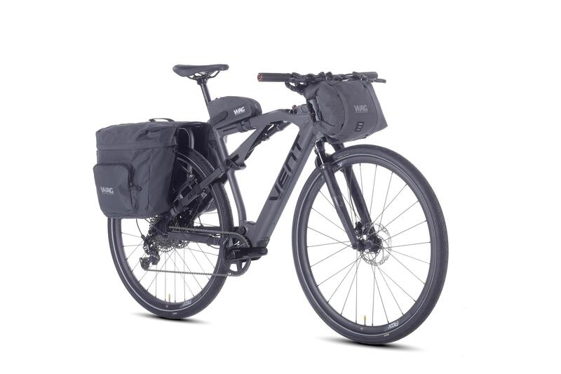 La trasmissione adottata è la nuova proposta di SRAM dedicata al mondo gravel, ovvero la serie XPLR (explorer) a 12v AXS, con comando cambio e freno integrati in un'unica leva, cassetta 11-44 e guarnitura 40T, per uno sviluppo completo dei rapporti di pedalata. La filosofia progettuale di VENT è quella di avere una eGravel dal peso ridotto, che permetta di regolare il motore in funzione della necessità. Riguardo la dotazione, troviamo anche una sella Prologo Proxim, comandi wireless del cambio e freni a disco Sram Paceline da160mm.
