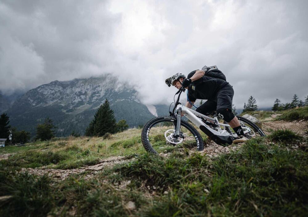 I primi colpi di pedale danno una sensazione solida con un'ondata di potenza fluida ma decisa. Se la bici rileva che è nella marcia sbagliata per la situazione, cambia immediatamente e automaticamente! Una marcia alla volta. Quando inizi a pedalare più velocemente, abbiamo notato di nuovo il cambio del motore per adattare la cadenza alla velocità della bici. Il nostro primo spostamento è stato su una strada asfaltata verso l'inizio del sentiero. Questa è stata l'occasione ideale per giocare con la modalità di cambio automatico e le modalità di alimentazione. C'è stata una leggera salita e abbiamo sentito che la modalità Rally power ci dava il giusto supporto, il motore manteneva una cadenza costante di circa 75 giri al minuto e abbiamo notato che le marce cambiavano quasi silenziosamente, mantenendo la moto in movimento mentre la ripidità della collina aumentava.