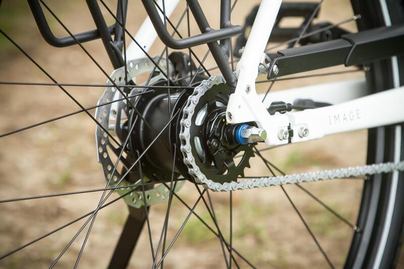 La Image 3 che ci è stata data in test ha un telaio di tipo "Wave" ovvero aperto e senza un tubo orizzontale, che offre l'indubbio vantaggio di un facile accesso in sella a chiunque, compreso a chi porti una gonna. A spingerla è la power unit Bosch Performance CX, quindi un sistema ben collaudato e performante. Ha una batteria Power Tube all'interno del tubo diagonale da 625 Wh. Essendo integrata nel telaio può essere caricata sia da montata sia separatamente in casa. Il motore Bosch Performance CX ha 80 Nm di coppia ma ha una programmazione software dedicato all'uso in città. Il display è Bosch Intuativa che ha tutte le informazioni necessarie, comprese la distanza, la velocità, la gamma e i livelli di assistenza alla potenza. Il telaio è in alluminio e l'intera costruzione include, nella versione da noi testata, parafanghi, un portapacchi e luci led per un pacchetto da utilitaria full optional. Sulle ruote da 28" vengono montati pneumatici Schwalble Energizer che sono un'ottima scelta per le superfici variegate delle città e hanno anche una bassa resistenza al rotolamento. Il cambio è lo Shimano Nexus a 8 velocità integrato nel mozzo e ha la comodità di consentire le cambiate anche quando si è fermi e questo riteniamo sia essenziale in un ambiente cittadino affollato dove spesso devi fermarti e ripartire per un imprevisto o un semaforo. La Image 3 ha anche una serratura incorporata che immobilizza la bicicletta per brevi periodi.