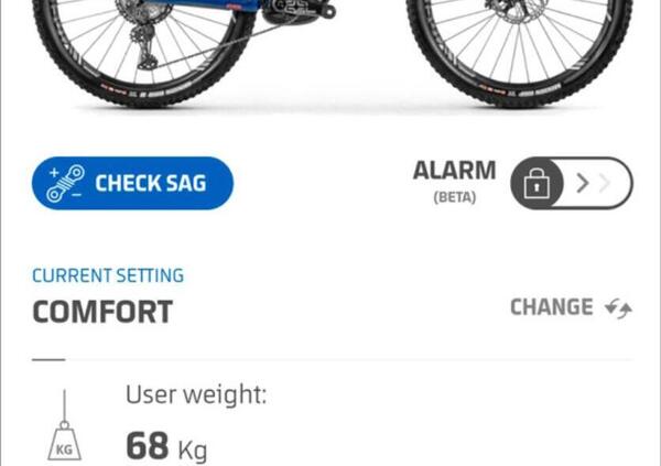 L'app è in grado di calcolare in base alla velocità al peso corporeo del pilota se il setup è il più è corretto e se le sospensioni sono configurate da assecondare lo stile di guida e le caratteristiche del percorso.