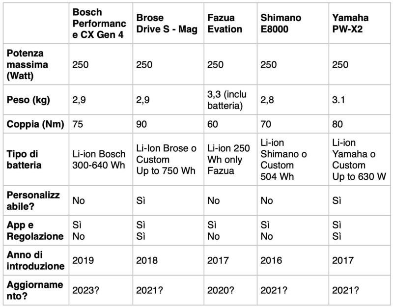 Negli ultimi anni c'è stata un’impennata del numero di motori disponibili sul mercato, e tanti sono in arrivo, soprattutto da quando i giganti dell’industria asiatica hanno iniziato a sviluppare prodotti più commerciali. Sappiamo che è impossibile dare informazioni troppo dettagliate per ogni motore in commercio, quindi abbiamo pensato di concentrarci sui cinque motori più diffusi e che abbiamo testato più a lungo: Bosch, Brose, Fazua, Shimano e Yamaha.