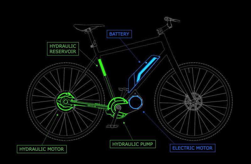 Immaginate una bicicletta senza catena o senza cinghia, silenziosissima, pulita e fluida. L'azienda Oyo ha risposto alla sfida con una eBike a trasmissione idraulica. Un sistema originale che sfrutta la movimentazione di un fluido all'interno del telaio. Una pompa azionata dai pedali genera pressione e il fluido la trasmette alla ruota posteriore che trasferisce l'energia alla ruota posteriore. Il circuito si chiude con il ritorno del fluido nella parte centrale del telaio.
