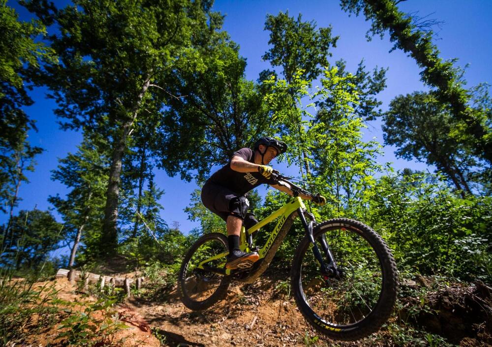 Ci sono quattro bici all'interno della gamma, quella che abbiamo in prova è un modello base, taglia L. Il telaio è in carbonio, incluso il braccio oscillante posteriore ed è imbullonato insieme ad alcuni perni di ottima fattura realizzati in CNC, mentre l’ammortizzatore posteriore è un RockShox con piggy back. La caratteristica chiave delle sospensioni VPP, che si trova solo su due marchi sul mercato, è la capacità di assorbire i grandi ostacoli che si trovano sui sentieri, offrendo al contempo un ottimo supporto durante la pedalata.