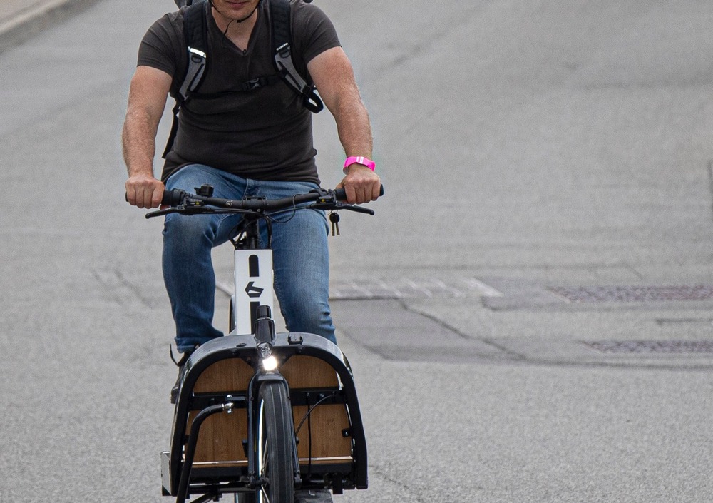 Si sale in sella e si guida come una normale eBike. Il sostegno del motore è pressoché immediato e spinge rapidamente fino ai 25 km/h di velocità massima. In marcia è stabile e sicura, ma nelle manovre a bassa velocità con il portapacchi anteriore carico è necessaria una certa abilità per mantenere l’equilibrio.