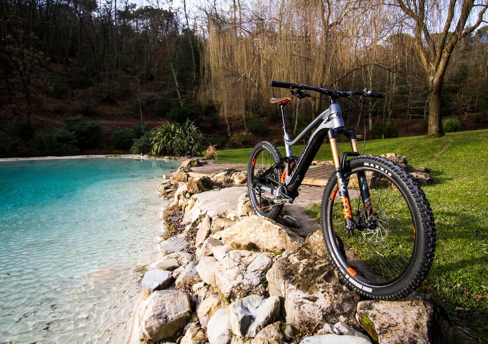 Il modello che abbiamo provato ha l'allestimento top di gamma, e ovviamente punta ad ottenere il massimo in termini di leggerezza e prestazioni. Le ruote, il manubrio e anche le guarniture sono in fibra di carbonio, mentre la sospensione è il top della Fox.