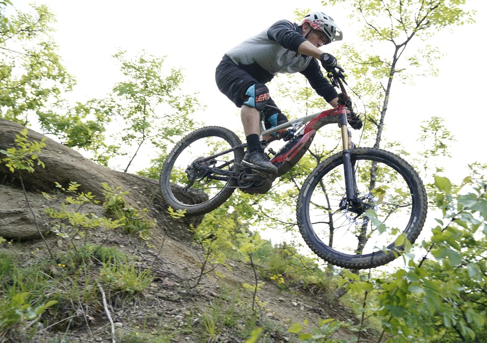 IN DISCESA - La Mig-RR è veloce. Molto veloce! La coppiata 170 mm di escursione con ruota da 29” digerisce rocce e buche come se non ci fossero. La scelta di un Renthal Carbon FatBar garantisce poi ancora più controllo e comfort quando lo sconnesso picchia duro. L'uso di manubri in carbonio infatti restituisce meno vibrazioni alle braccia del rider che quindi, istintivamente, è portato a stringere meno e di conseguenza si affatica meno durante i percorsi più lunghi.
