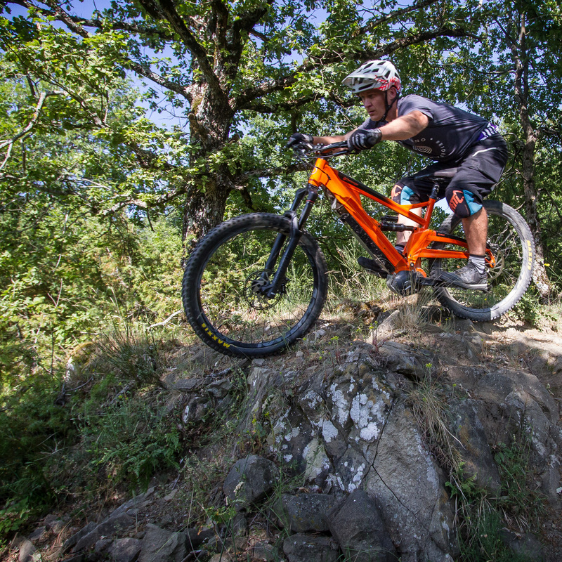 La GT non è una bici estrema. L’abbiamo utilizzata in collina, in un percorso pieno di curve con qualche corta discesa e abbiamo anche effettuato alcuni salti. Questa bici offre al ciclista la possibilità di muoversi molto facilmente e di tenere la situazione sotto controllo anche in caso di curve strette. Le salite sono divertenti, e la bici supera facilmente gli ostacoli. Le ruote da 29 pollici danno una sensazione di rotolamento regolare e di molta aderenza su rocce e superfici con poco grip, soprattutto in salita. E’ facile trovare la posizione ideale in sella e muoversi per dirigere sempre la bici dove si vuole, anche in situazioni complesse prima di curve strette.