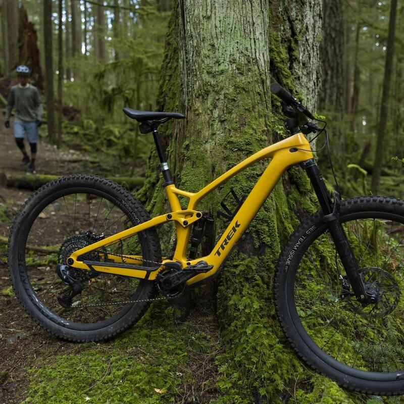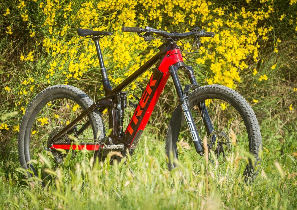 Le ruote di questa bici sono in carbonio, così come il manubrio. L'uso di un manubrio in carbonio rende la guida in fuoristrada più morbida e meno soggetta a vibrazioni. Le ruote in carbonio aumentano la precisione e, nel caso della Trek, favoriscono la bassa resistenza al rotolamento. Le ruote sono dotate dei sensori di pressione AirWiz di SRAM, che forniscono dati sulla corretta pressione degli pneumatici da utilizzare. Abbiamo provato anche i nuovi pneumatici Goodyear Newton. Le sospensioni sono le migliori della gamma Rockshox e includono i sensori ShockWiz, che consentono di monitorare le prestazioni in tempo reale.