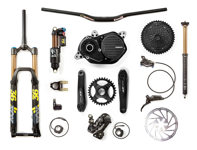 Il risultato è una eMTB con telaio in fibra di carbonio biammortizzata con forcella da 160mm e posteriore da 165. Le ruote misurano 29 x 2.4 " all'anteriore e 27.5" x 2.8 " al posteriore. E' spinta dal motore Shimano STEPS E8000, con una batteria personalizzata da 540Wh integrata.