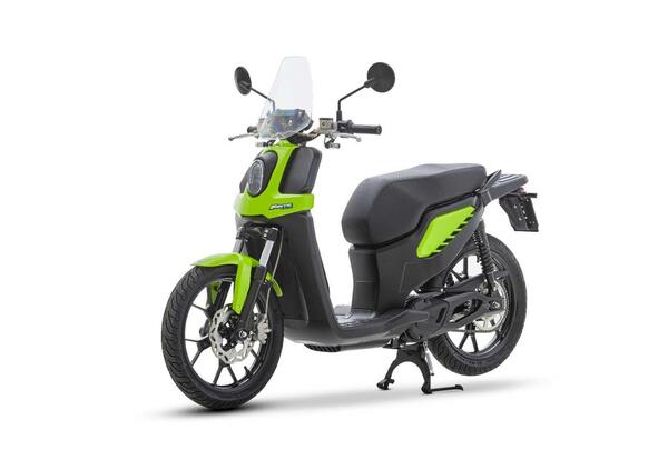 La batteria agli ioni di litio è da 2,2 kWh, ma può essere raddoppiata alla capacità di 4,4 kWh. L'autonomia arriva a 100 km che è più che sufficiente per l'utilizzo tipico di uno scooter di questo genere.