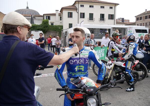 A Treviso c'era anche Matteo Ferrari, primo Campione del Mondo MotoE: “Guidare una moto elettrica regala grandi emozioni. Quando l’ho provata la prima volta mi ha sorpreso sentire i cordoli, le gomme, così come toccare l’asfalto con il ginocchio, cosa che non sentiresti mai con una MotoGP o una SBK. Certo una moto elettrica richiede un adattamento nello stile di guida perché la potenza e la coppia sono davvero tante, per questo la formazione è importante”.