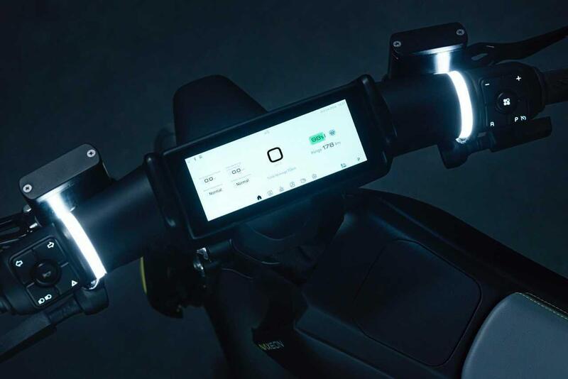 La capostipite di questi prodotti è appunto la moto compatta I AM, una urban bike con ruote da 17" e un motore in grado di sviluppare una potenza di picco di 10 kW e una coppia di 273 Nm che le consente di raggiungere i 120 km/h e di farlo piuttosto rapidamente con uno 0-50 di 2,8 secondi ed uno 0-80 di 6,5 secondi. Prestazioni interessanti che la pongono - almeno sulla carta - tra le più performanti nel segmento delle 125 equivalenti ad elettroni. Al di là di velocità e accelerazione, però, c'è ben altro perché la batteria di questa moto è un'unità allo stato semisolido che offre maggiore densità energetica e rapidità di carica (+30%) rispetto ad un'analoga batteria tradizionale e un più lungo ciclo di vita. Inoltre risulta più leggera. Viene proposta nelle due capacità di 4.3 e 6.5 kWh per autonomie che vanno perciò dai 120 ai 180 km, decisamente abbondanti per il commuting. Le buone notizie non finiscono qui: la I AM è dotata di caricatore rapido con tanto di presa di Tipo2 che, al momento, è piuttosto una rarità in questa fascia del mercato e appannaggio soltanto di prodotti di fascia superiore. Il risultato? Naxeon dichiara che si può fare una ricarica dal 20 all'80% in un'ora e mezza. Il peso varia dai 118 ai 130 kg a seconda (deduciamo) della batteria. Le chicche tecnologiche poi non mancano. Oltre naturalmente ad ABS, TCS e TERS, le luci a LED si sprecano letteralmente visto che oltre che frontale e posteriore ci sono anche... laterali lungo tutta la silhouette della moto ed è possibile farle danzare a ritmo di musica. Non solo, quelle ad anello sul manubrio seguono le nostre azioni cambiando colore se acceleriamo o deceleriamo. Ci sono poi telecamera frontale e posteriore e dietro c'è anche un sensore di prossimità per il monitoraggio dell'angolo cieco. Il display a colori da ben 7 pollici è touch e ci mostra oltre alle consuete informazioni anche quanto inquadrato dalle telecamere e si collega ovviamente allo smartphone e all'apposita app per gestire, tra l'altro, il blocco a distanza e attivare report personalizzati. L'accensione è keyless e non solo, la moto ha un sensore per capire quando il pilota è in sella ed è anche in grado di riconoscerlo ed attivare il profilo configurato. Vi è poi la modalità "lumaca" per agevolare i parcheggi e non manca l'antifurto sonoro e luminoso che si attiva quando la moto viene spostata. Ai più attenti però non sarà sfuggita la particolare architettura dell'avantreno con una sospensione a parallelogramma completamente carenata, una vera rarità che oltretutto conferisce a questa I AM una linea molto caricata in avanti e un'indole sportiva.