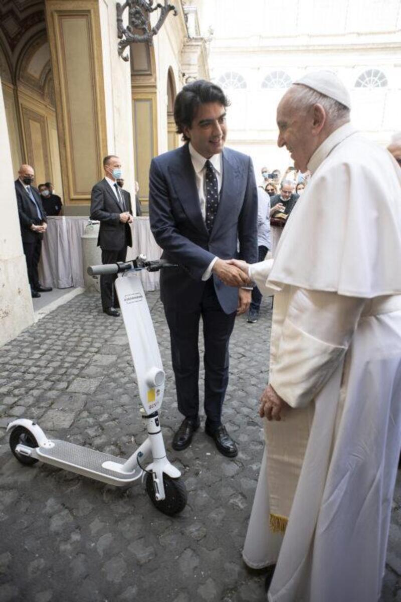 Alcuni giorni fa, Papa Francesco ha ricevuto in dono un monopattino elettrco. L'omaggio arriva da Assosharing, associazione di categoria della sharing mobility. "Assosharing ha voluto recapitare un piccolo omaggio al Papa, contribuendo a ridurre quello che il Santo Padre ha definito il debito ecologico verso i nostri figli" ha spiegato in quell'occasione il Presidente dell'associazione Matteo Tanzilli.