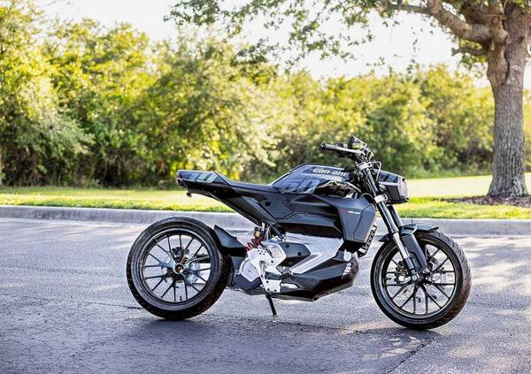 Un'altra curiosità tecnica arriva dal motore che è posto poco dietro il perno forcellone e all'interno di quest'ultimo in una struttura unica con la trasmissione finale che ricorda un po' quella degli scooter. Di certo questo consente di avere la cinghia di trasmissione sempre protetta e di massimizzare lo spazio per la batteria. Ipotizziamo possa anche facilitare eventuali interventi di manutenzione. Di contro ci fa anche supporre che il motore non abbia dimensioni ragguardevoli perché altrimenti andrebbe ad influire sull'inerzia del veicolo.