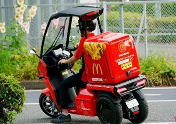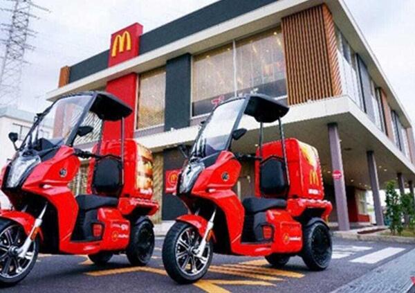 McDonald's Japan si è dotata di 80 scooter elettrici a tre ruote per consegnare hamburger e patatine a domicilio. Saranno attivi in circa una 40ina di punti vendita. Per ora sono già in servizio 6 veicoli in tre fast food nella prefettura di Kanagawa. Si chiama AA Cargo e nel design c'è una mano italiana, quella di Claudio Sanchini.
